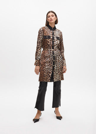 Blusa com estampa animal e bolsos frontais em material macio. Apresenta fechamento por botões e colarinho contrastante. Seu design versátil e moderno faz dela uma peça essencial para o seu guarda-roupa, adicionando um toque audacioso a qualquer conjunto.