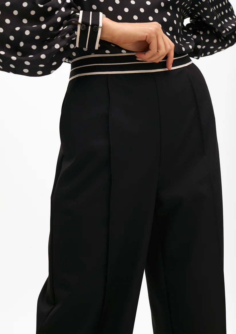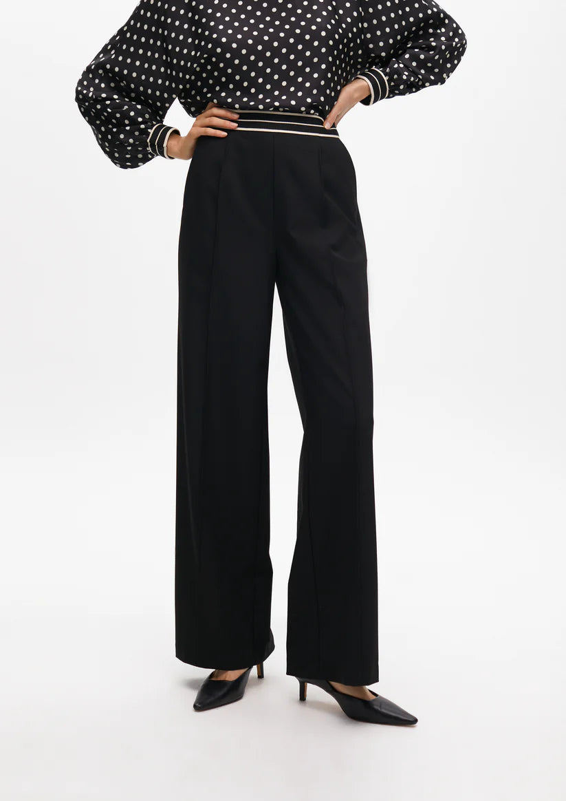 O design bicolor da cintura adiciona um elemento moderno e sofisticado, tornando esta calça uma excelente opção para diversas ocasiões. Confeccionada com uma combinação de 67% Poliéster, 29% Viscose e 4% Elastano.