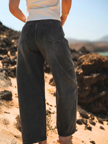 Com um design moderno e cheio de personalidade, estas jeans combinam o estilo descontraído do corte wide leg com um toque glamoroso graças às tachas metálicas aplicadas ao longo das costuras laterais. O modelo de cintura alta proporciona conforto e versatilidade, adaptando-se facilmente a diferentes estilos e ocasiões — desde um look urbano com sneakers até uma composição mais sofisticada com saltos altos.