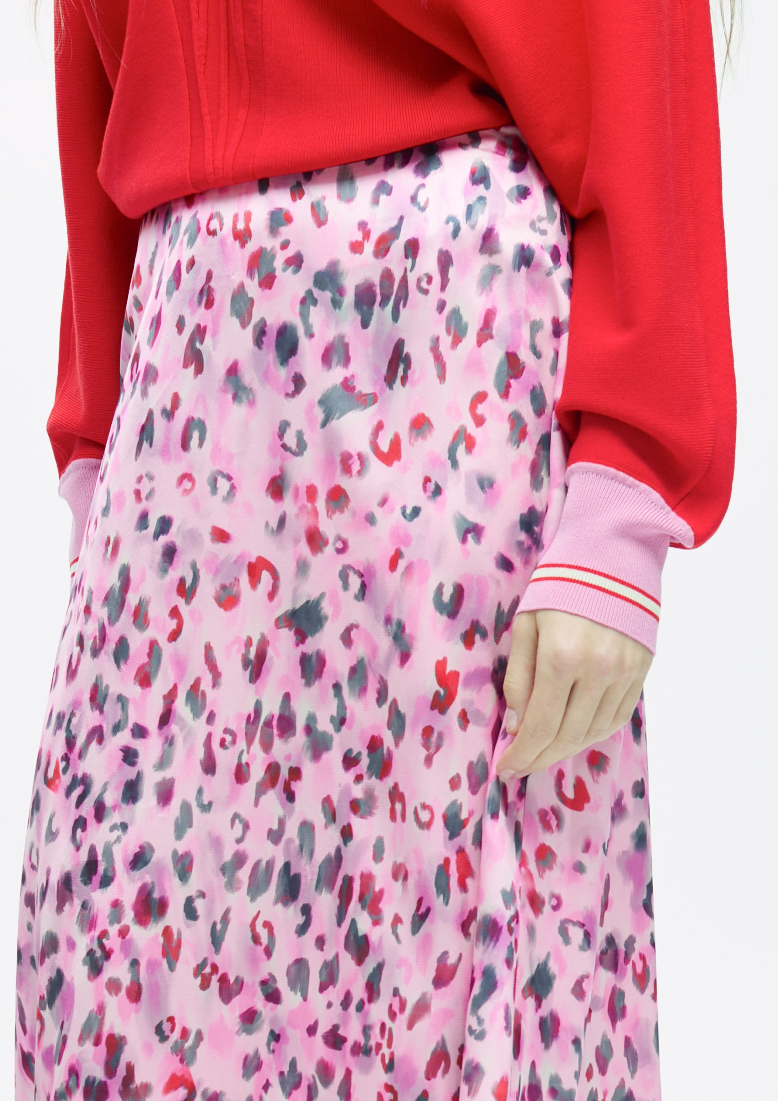 Saia midi evasê com uma atrativa estampa animal em tons vibrantes. Confeccionada em material leve para um ajuste confortável e fluido. Perfeita para adicionar estilo a qualquer conjunto.