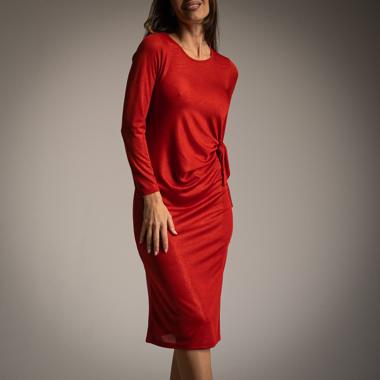 VESTIDO LAMINADO DE LAÇO LATERAL