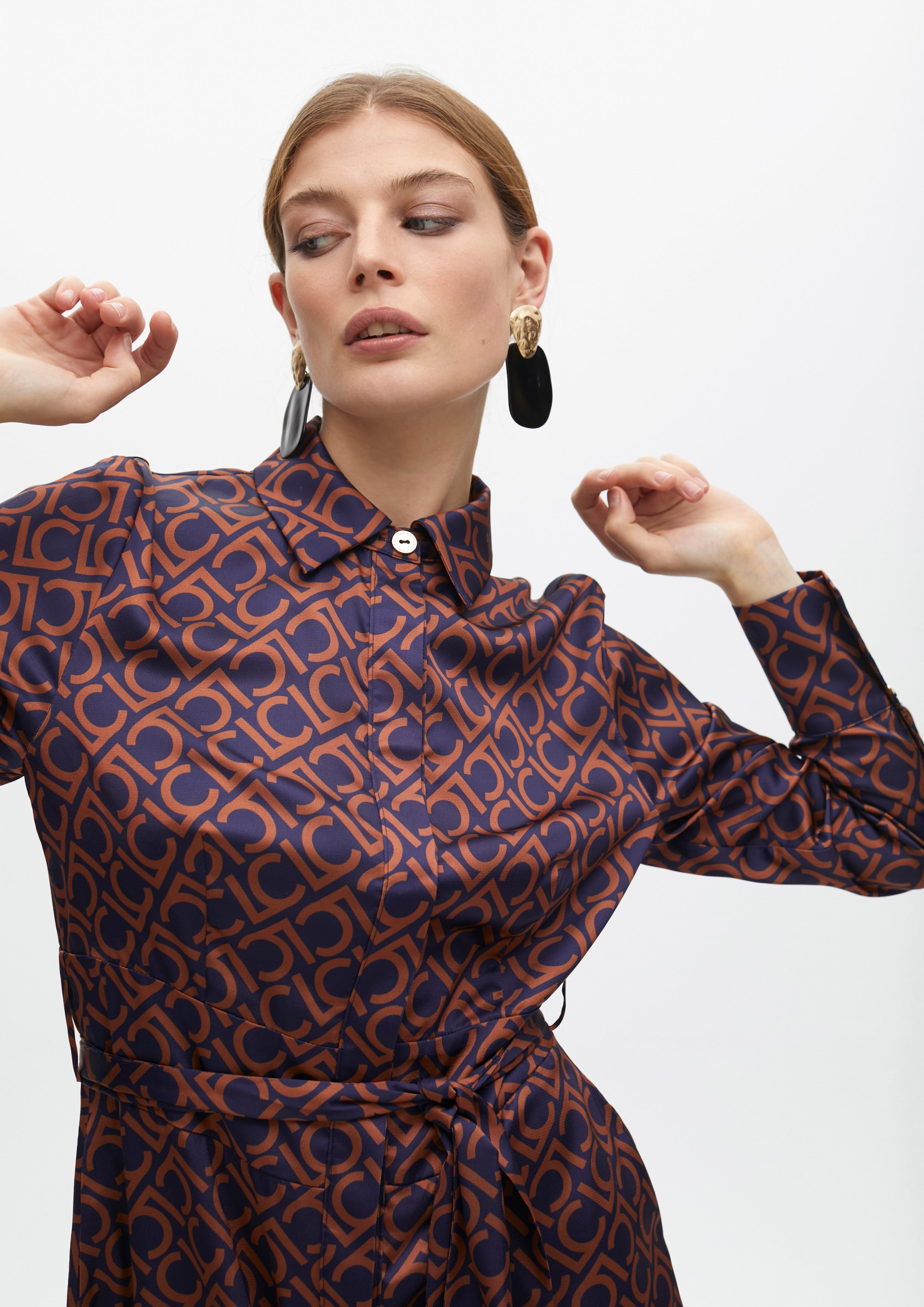 Vestido longo com estampa de logotipo. Confecionado em tecido leve para ajuste confortável. Mangas longas com punhos franzidos.